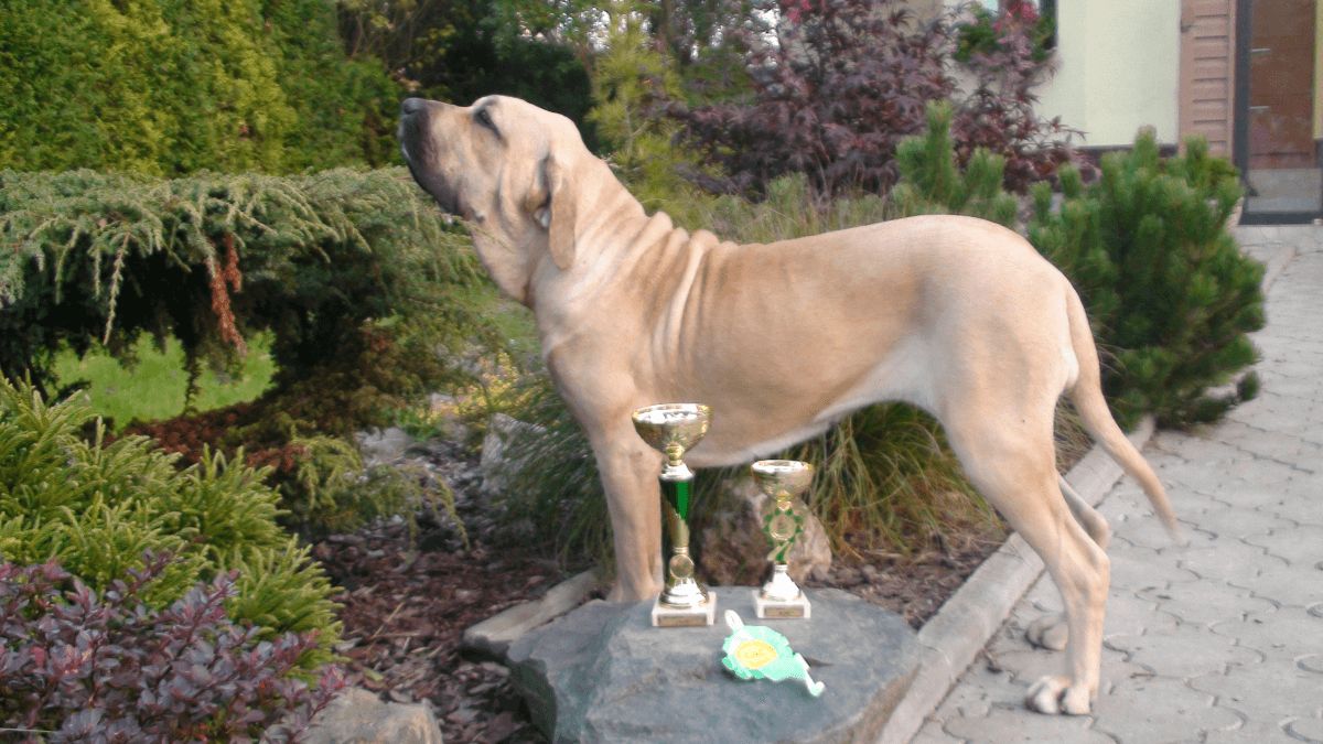 GENERAL APPEARANCE : Typically a molossoid breed. Powerful bones, rectangular and compact structure, but harmonious and well proportioned. Displays, together with a massive body, a great amount of concentrated agility which is easily perceived. Bitches must show a well defined feminity which clearly distinguishes them from males.