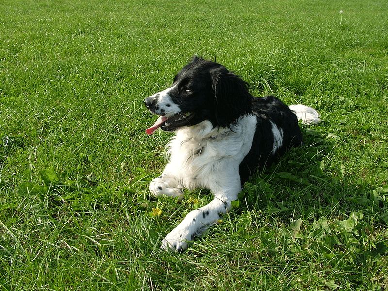 Leathers : Set fairly low. Auricle so little developed that ear flaps hang closely, without a fold at the base, along the head. Not admitted are ears with a strongly developed auricle which do not fold directly at the base of the ear, but further down, so that they do not hang flat against the head. The ears are moderately long and have the form of a mason’s trowel. The feathering of the ear is a typical characteristic of the breed : rather long at the base of the ear, decreasing in length gradually, the lowest 1/3 part of the ear covered with short hair. The long coat must be straight; slightly wavy is permitted, but curled is objectionable.